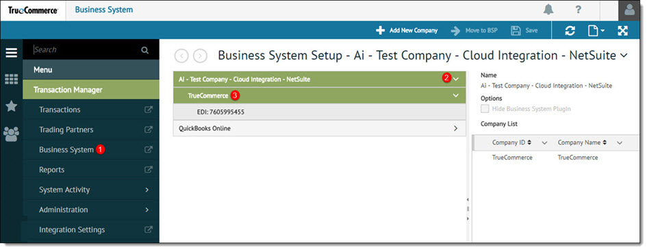 To display the company list, click the arrow next to the Business System containing the company to be modified.